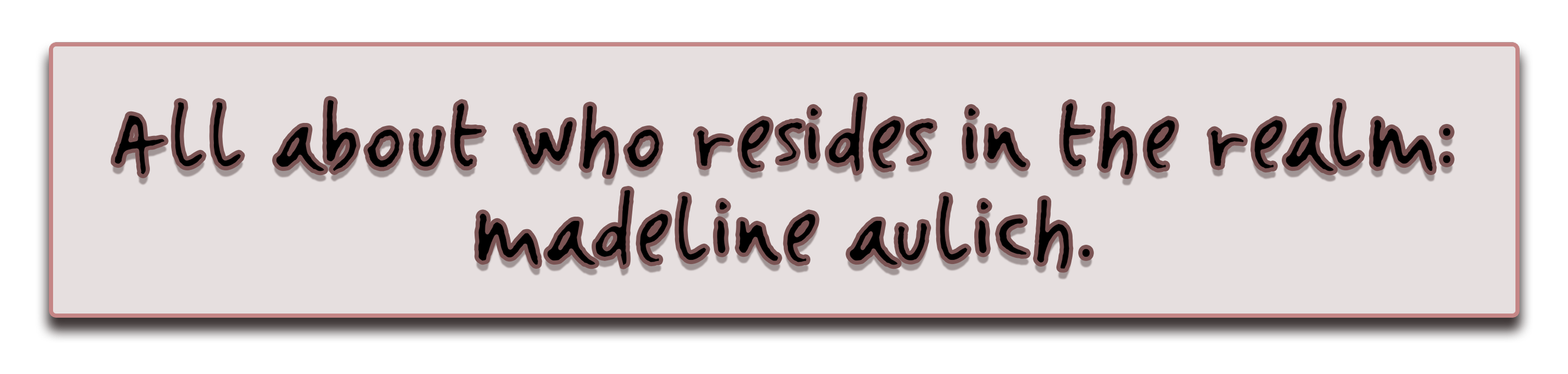 Text in a box that says 'All about who resides in the realm: madeline aulich.'